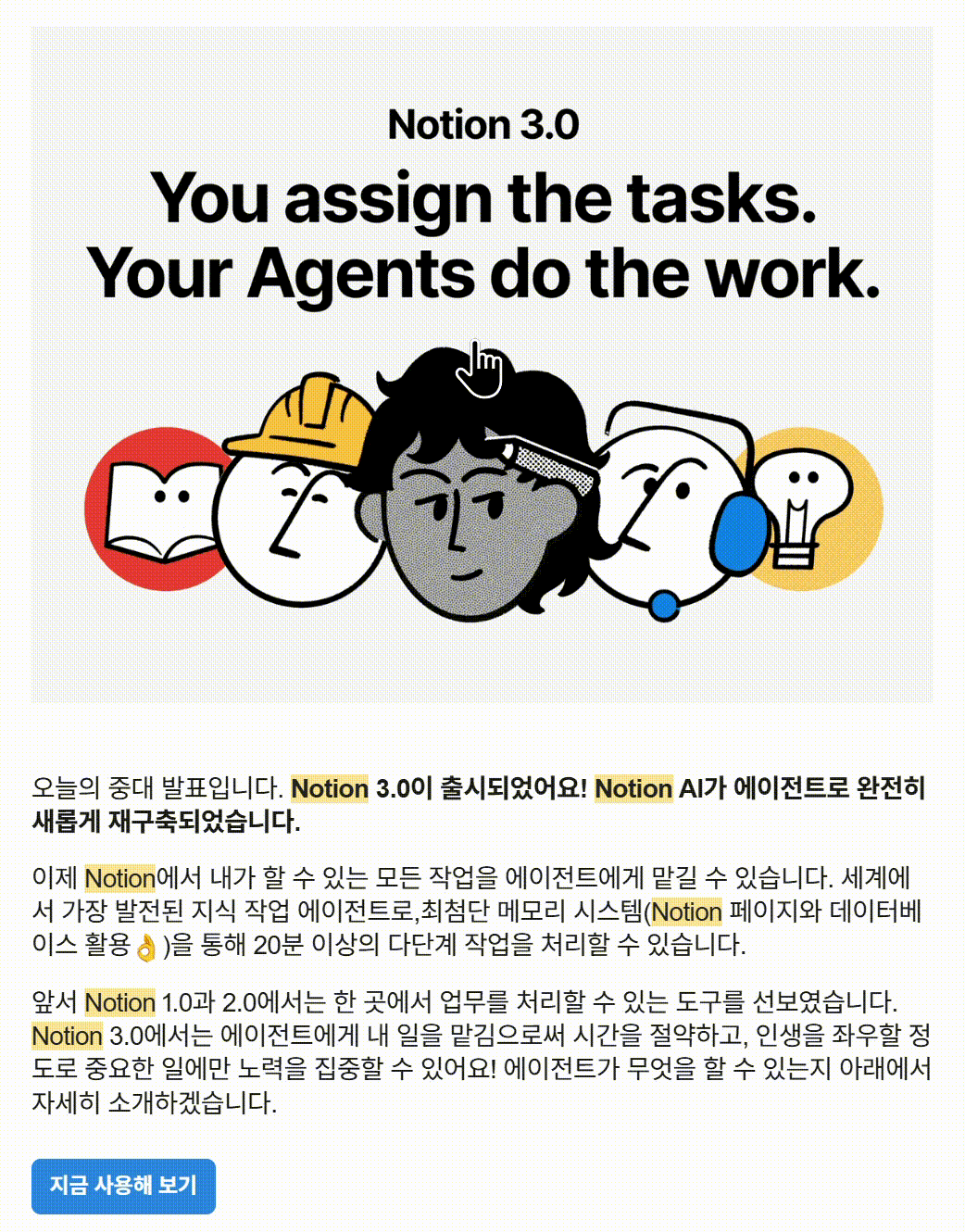 노션의 업데이트 소식에는 주어가 '우리(We)'가 아니라 '당신(You)'입니다.