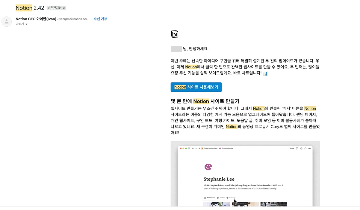 "가장 끝까지 읽히는 이메일"은 바로 노션이었습니다.